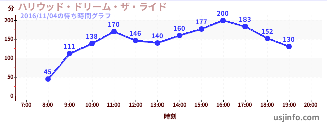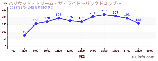 • ハリウッド・ドリーム・ザ・ライド〜バックドロップ〜$B$N(B2016年11月04日の待ち時間