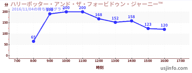 • ハリーポッター・アンド・ザ・フォービドゥン・ジャーニー™$B$N(B2016年11月04日の待ち時間