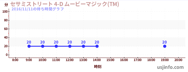• セサミストリート 4-D ムービーマジック(TM)$B$N(B2016年11月11日の待ち時間