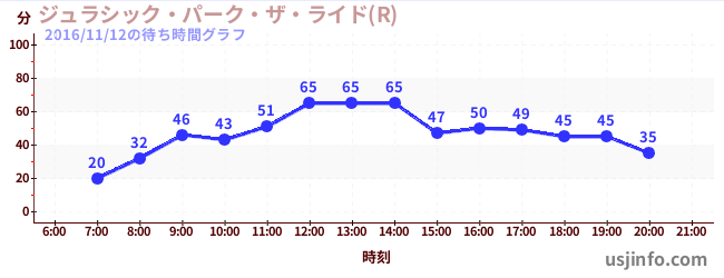 • ジュラシック・パーク・ザ・ライド(R)$B$N(B2016年11月12日の待ち時間