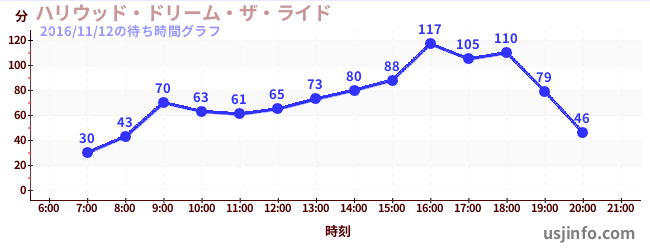 • ハリウッド・ドリーム・ザ・ライド$B$N(B2016年11月12日の待ち時間