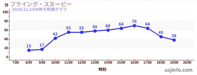 • フライング・スヌーピー$B$N(B2016年11月19日の待ち時間