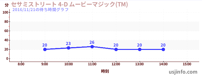 • セサミストリート 4-D ムービーマジック(TM)$B$N(B2016年11月21日の待ち時間
