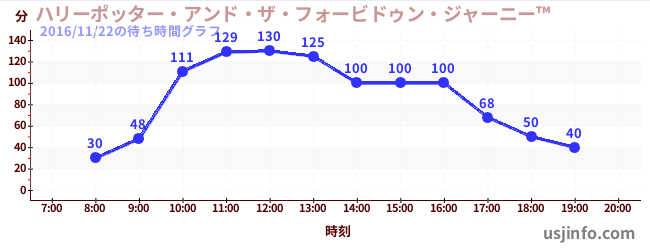 • ハリーポッター・アンド・ザ・フォービドゥン・ジャーニー™$B$N(B2016年11月22日の待ち時間