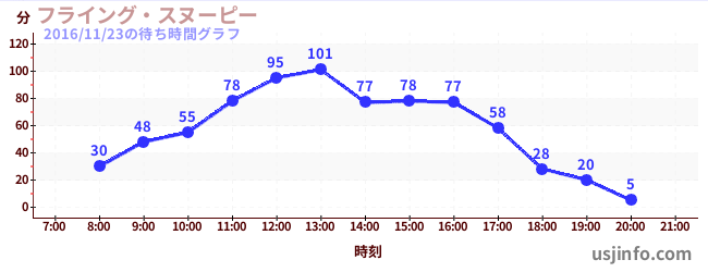 • フライング・スヌーピー$B$N(B2016年11月23日の待ち時間