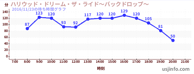 • ハリウッド・ドリーム・ザ・ライド〜バックドロップ〜$B$N(B2016年11月23日の待ち時間