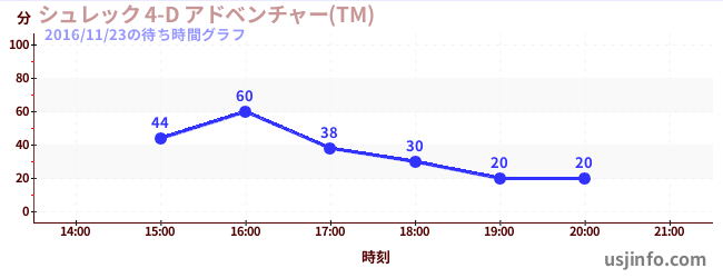 • シュレック 4-D アドベンチャー(TM)$B$N(B2016年11月23日の待ち時間