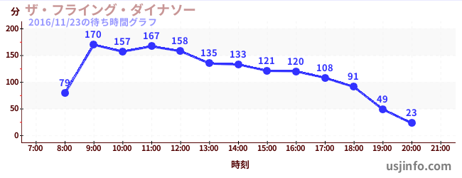 • ザ・フライング・ダイナソー$B$N(B2016年11月23日の待ち時間