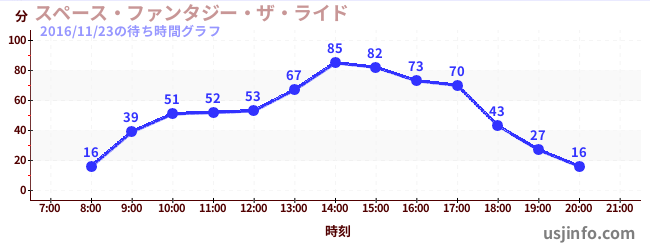 • スペース・ファンタジー・ザ・ライド$B$N(B2016年11月23日の待ち時間