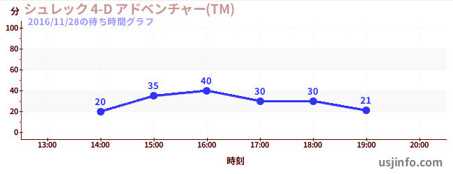 • シュレック 4-D アドベンチャー(TM)$B$N(B2016年11月28日の待ち時間