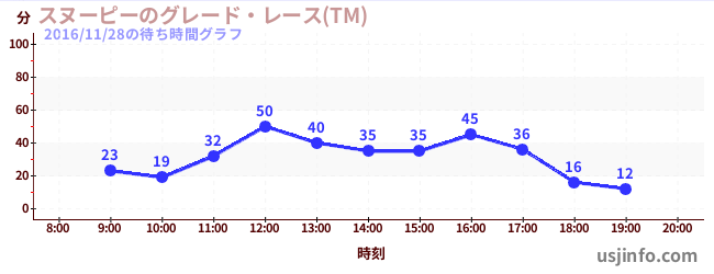 • スヌーピーのグレード・レース(TM)$B$N(B2016年11月28日の待ち時間