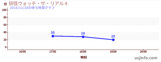• 妖怪ウォッチ・ザ・リアル 4$B$N(B2016年11月28日の待ち時間