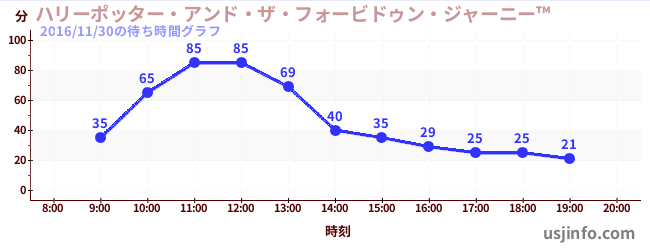 • ハリーポッター・アンド・ザ・フォービドゥン・ジャーニー™$B$N(B2016年11月30日の待ち時間