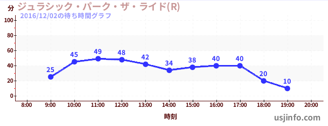 • ジュラシック・パーク・ザ・ライド(R)$B$N(B2016年12月02日の待ち時間