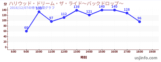 • ハリウッド・ドリーム・ザ・ライド〜バックドロップ〜$B$N(B2016年12月07日の待ち時間
