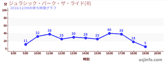 • ジュラシック・パーク・ザ・ライド(R)$B$N(B2016年12月09日の待ち時間