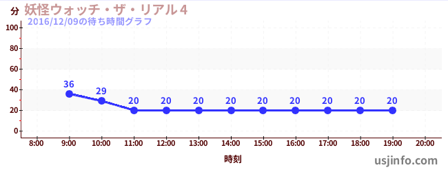 • 妖怪ウォッチ・ザ・リアル 4$B$N(B2016年12月09日の待ち時間