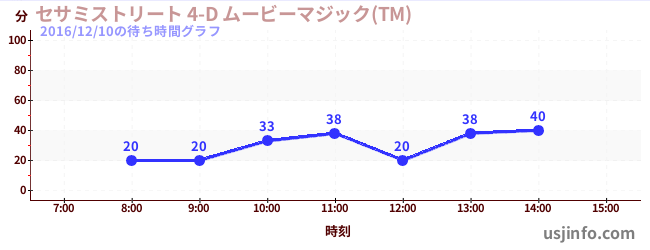 • セサミストリート 4-D ムービーマジック(TM)$B$N(B2016年12月10日の待ち時間