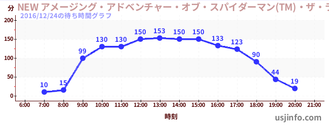 • NEW アメージング・アドベンチャー・オブ・スパイダーマン(TM)・ザ・ライド 4K3D$B$N(B2016年12月24日の待ち時間
