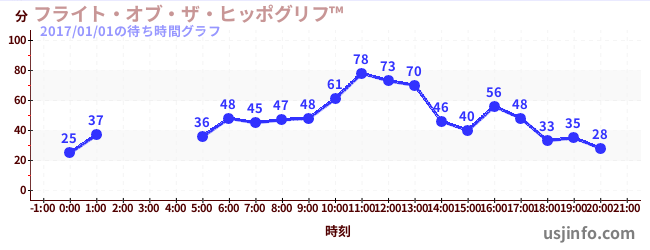 • フライト・オブ・ザ・ヒッポグリフ™$B$N(B2017年01月01日の待ち時間