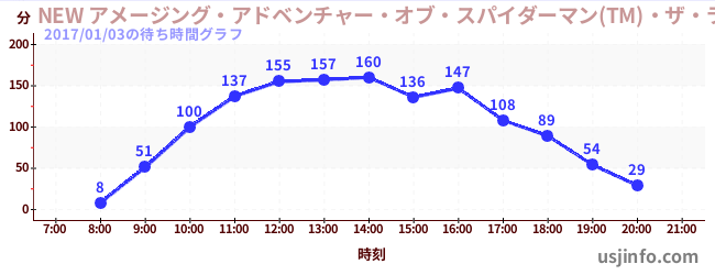 • NEW アメージング・アドベンチャー・オブ・スパイダーマン(TM)・ザ・ライド 4K3D$B$N(B2017年01月03日の待ち時間