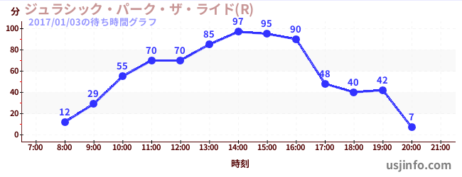 • ジュラシック・パーク・ザ・ライド(R)$B$N(B2017年01月03日の待ち時間