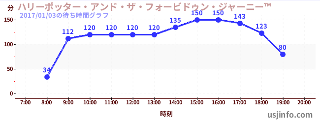 • ハリーポッター・アンド・ザ・フォービドゥン・ジャーニー™$B$N(B2017年01月03日の待ち時間