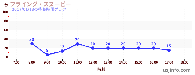 • フライング・スヌーピー$B$N(B2017年01月13日の待ち時間