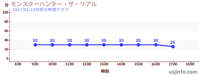 • モンスターハンター・ザ・リアル$B$N(B2017年01月13日の待ち時間