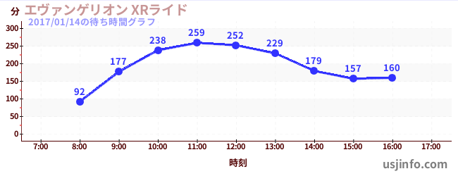 • エヴァンゲリオン XRライド$B$N(B2017年01月14日の待ち時間