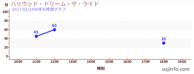 • ハリウッド・ドリーム・ザ・ライド$B$N(B2017年01月14日の待ち時間