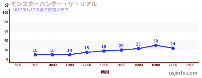 • モンスターハンター・ザ・リアル$B$N(B2017年01月17日の待ち時間