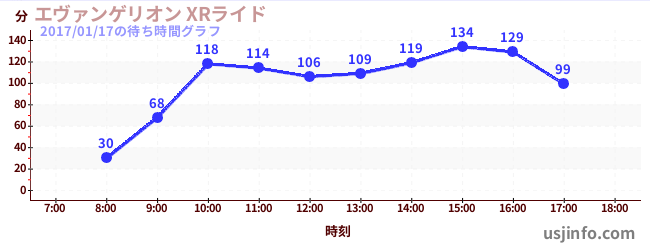 • エヴァンゲリオン XRライド$B$N(B2017年01月17日の待ち時間