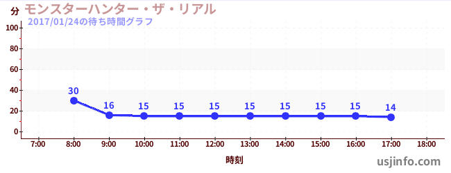 • モンスターハンター・ザ・リアル$B$N(B2017年01月24日の待ち時間