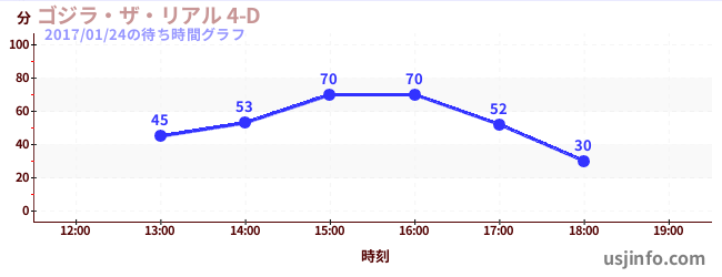• ゴジラ・ザ・リアル 4-D$B$N(B2017年01月24日の待ち時間