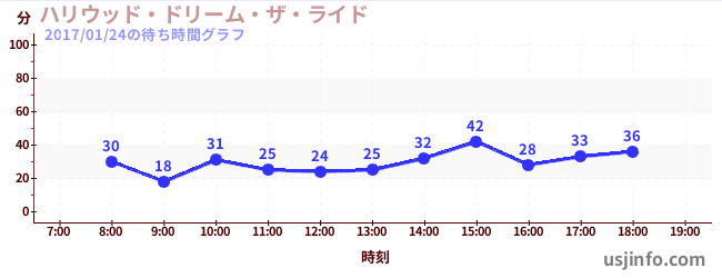 • ハリウッド・ドリーム・ザ・ライド$B$N(B2017年01月24日の待ち時間