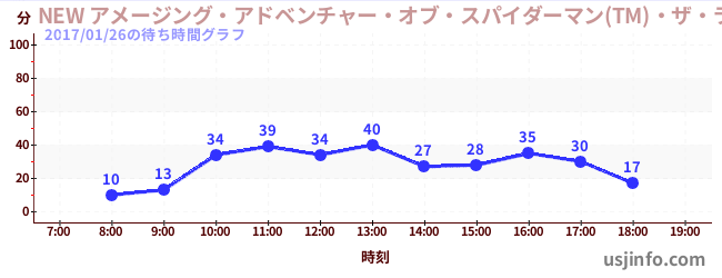 • NEW アメージング・アドベンチャー・オブ・スパイダーマン(TM)・ザ・ライド 4K3D$B$N(B2017年01月26日の待ち時間