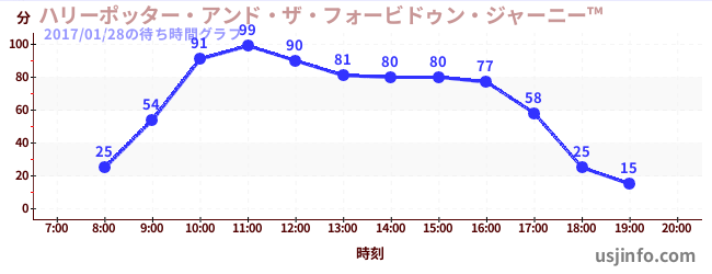 • ハリーポッター・アンド・ザ・フォービドゥン・ジャーニー™$B$N(B2017年01月28日の待ち時間