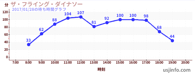 • ザ・フライング・ダイナソー$B$N(B2017年01月28日の待ち時間