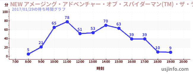 • NEW アメージング・アドベンチャー・オブ・スパイダーマン(TM)・ザ・ライド 4K3D$B$N(B2017年01月29日の待ち時間