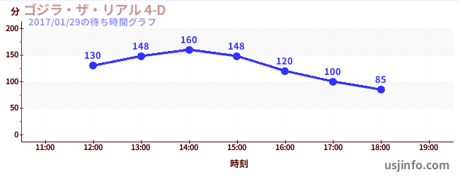 • ゴジラ・ザ・リアル 4-D$B$N(B2017年01月29日の待ち時間