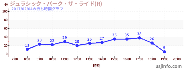 • ジュラシック・パーク・ザ・ライド(R)$B$N(B2017年02月04日の待ち時間