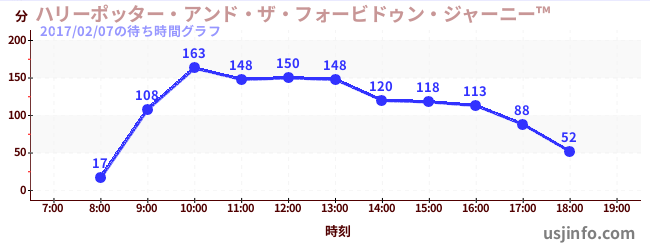• ハリーポッター・アンド・ザ・フォービドゥン・ジャーニー™$B$N(B2017年02月07日の待ち時間
