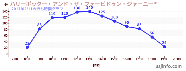 • ハリーポッター・アンド・ザ・フォービドゥン・ジャーニー™$B$N(B2017年02月11日の待ち時間