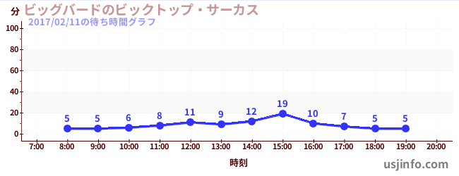 • ビッグバードのビックトップ・サーカス$B$N(B2017年02月11日の待ち時間