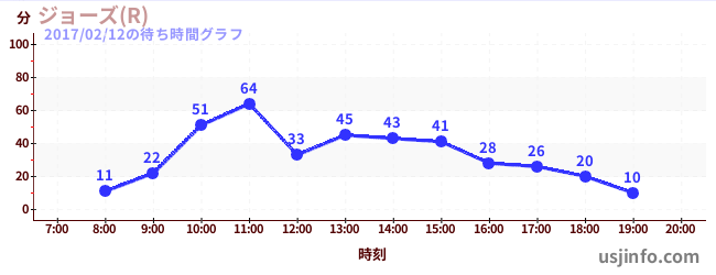 • ジョーズ(R)$B$N(B2017年02月12日の待ち時間