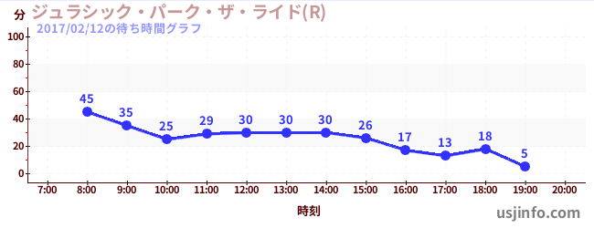 • ジュラシック・パーク・ザ・ライド(R)$B$N(B2017年02月12日の待ち時間