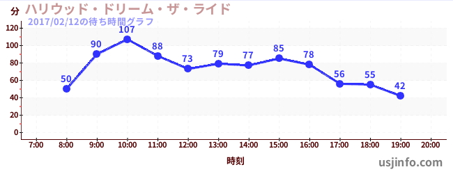 • ハリウッド・ドリーム・ザ・ライド$B$N(B2017年02月12日の待ち時間