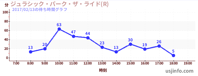• ジュラシック・パーク・ザ・ライド(R)$B$N(B2017年02月13日の待ち時間