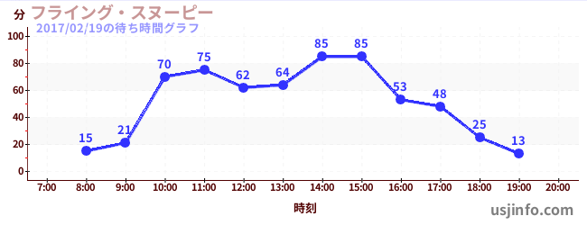 • フライング・スヌーピー$B$N(B2017年02月19日の待ち時間